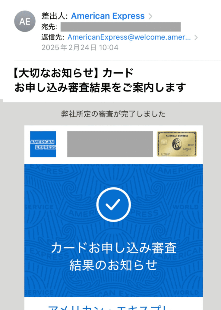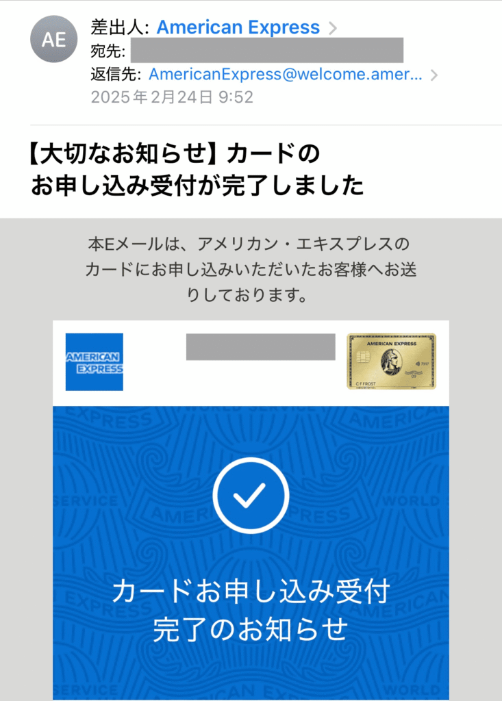 2025年2月24日 9時52分にオンラインでAMEXゴールドカードを申し込み。